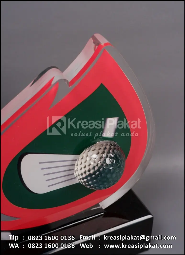Plakat Akrilik Logo Badak LNG Golf Bontang terbuat dari bahan akrilik model desain custom logo LNG Golf yang menggunakan teknik uv print. Untuk bagian dudukan menggunakan bahan resin solid hitam doff.